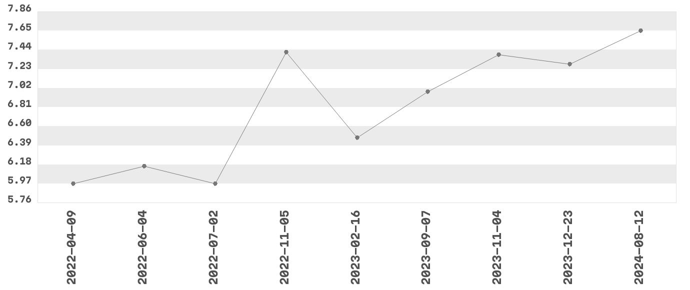 | 9 | 2024-08-12 | 7.65 | 1 | Grudziądz |