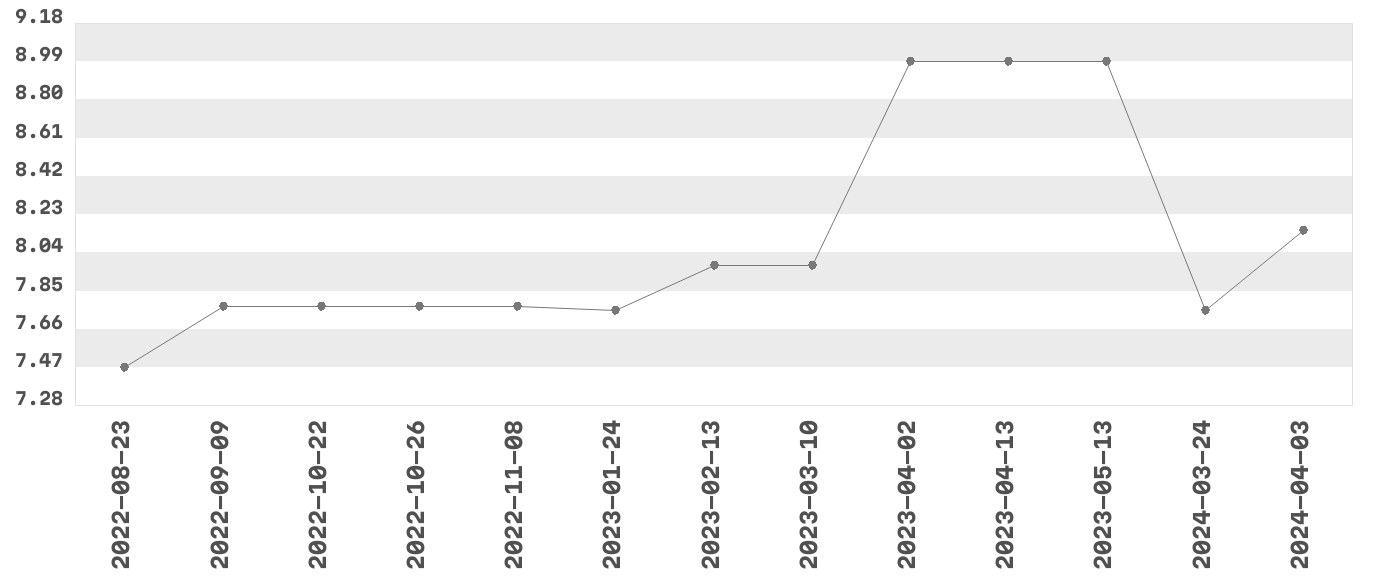 | 8 | 2023-03-10 | 7.99 | 1 | Racibórz |